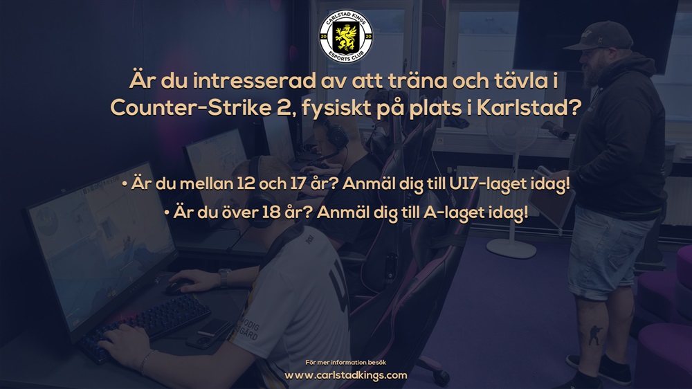 Är du mellan 12 och 17 år, och har möjlighet att vara med på plats i Karlstad? Anmäl dig då till CS2 U17!